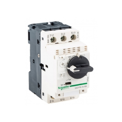 O disjuntor-motor termomagnético GV2P14 da Schneider TeSys GV2 oferece proteção ajustável de 6 a 10A para controle e proteção de motores.